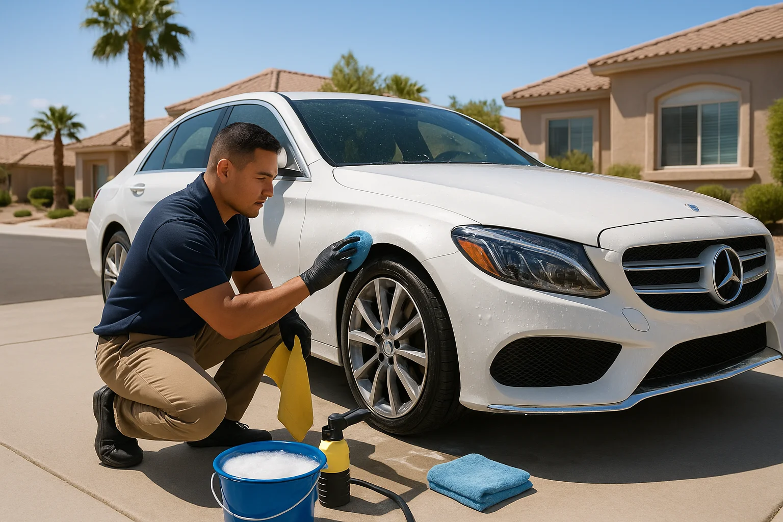 In Las Vegas, dust does not just sit on the surface. It can cling to paint and glass, especially after windy days and hot afternoons. Regular mobile car washes help remove that layer before it becomes harder to clean. A more complete detail can also help keep the finish looking better between washes.