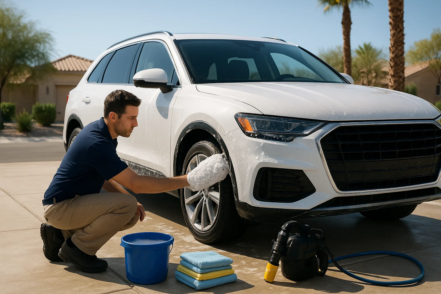 Yes. Desert dust and intense heat can wear on paint and interiors quickly. Regular mobile car washes and detailing help keep the vehicle cleaner, more comfortable, and better protected between jobs.