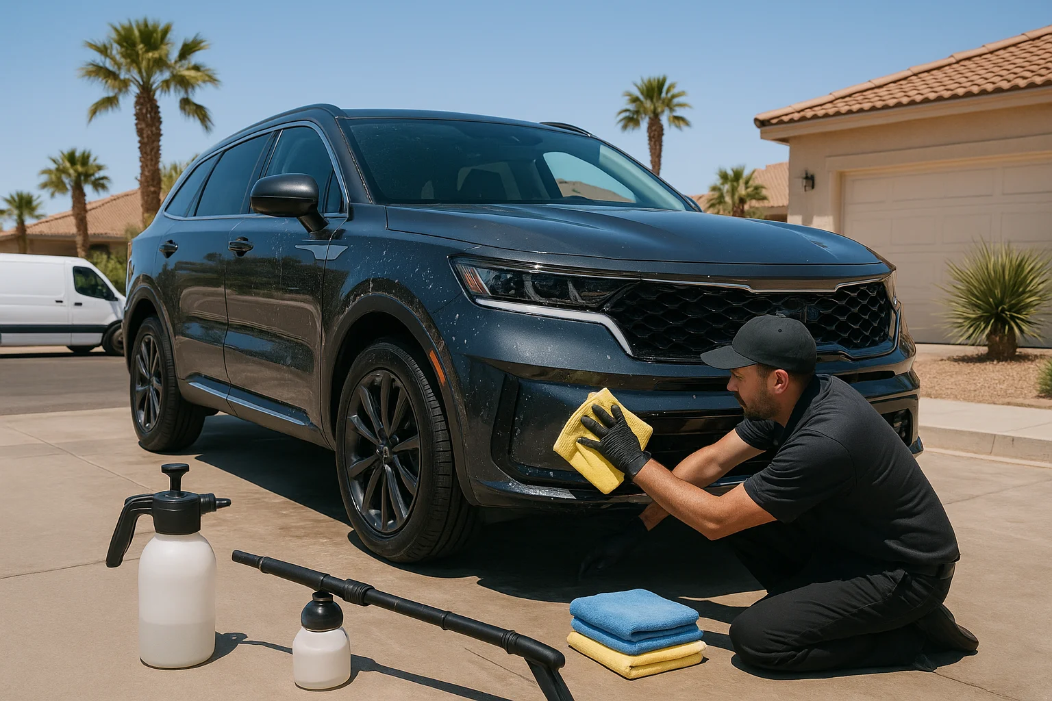 Las Vegas driving conditions are tough on vehicles. Dust builds up fast, heat can bake dirt into paint and trim, and interior surfaces can collect sand, crumbs, and daily clutter quickly. When your detailer arrives, the goal is to spend time on cleaning, restoring, and protecting your vehicle, not sorting through items or figuring out where to park.