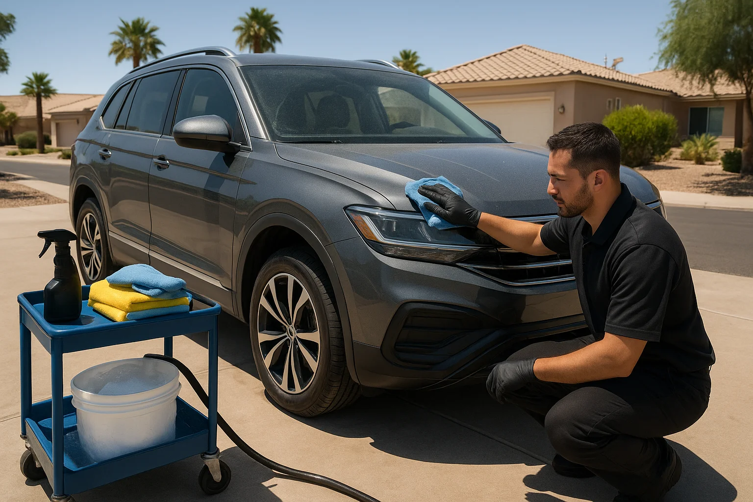 If you want to keep your vehicle looking sharp in a desert climate, regular cleaning matters. A consistent schedule is usually easier and more effective than waiting until the car looks heavily coated. For many drivers, that means choosing a service plan that fits their routine, such as options on our mobile detailing packages page.